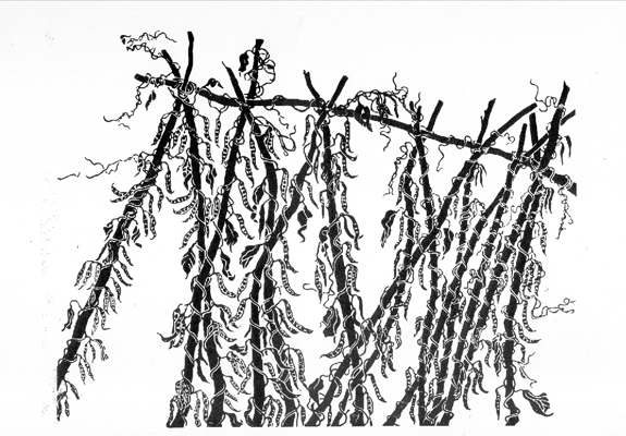 Bonenstokken in december 1980 51 x 68 cm