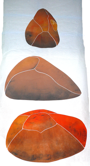 Lino op rijstpapier: Windkanters 2008 70 x 180 cm.