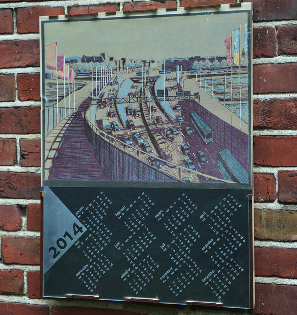 Deze wordt door middel van de lasersnijder uit populierentriplex gehaald en daarna verlijmd. De houder heeft een perspex voorkant en is zo geconstrueerd dat de prent goed beschermd is en makkelijk gewisseld kan worden. Ontwerp calendarium: Willem liem.