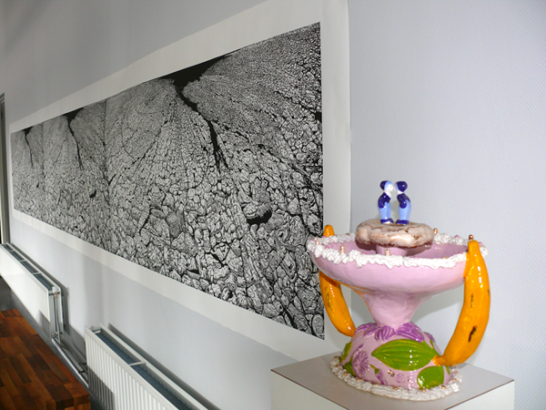 Lino: Breuklijnen 100x600cm. Keramiek van Guusje Beverdam.