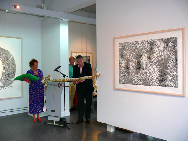 Mijnheer Grootenhuis (algemeen directeur Rabobank Enschede Haaksbergen) opent de tentoonstelling.